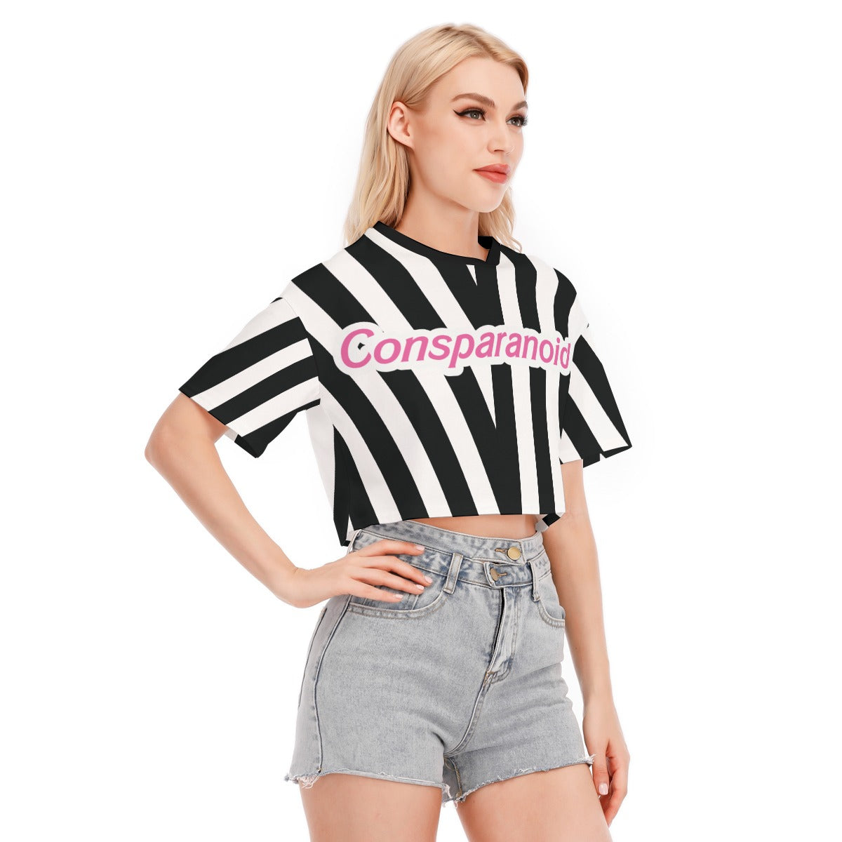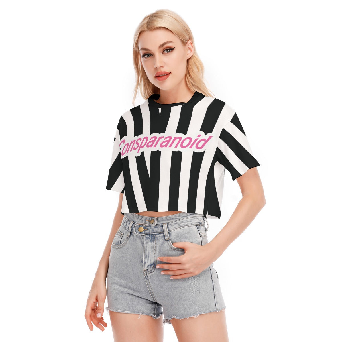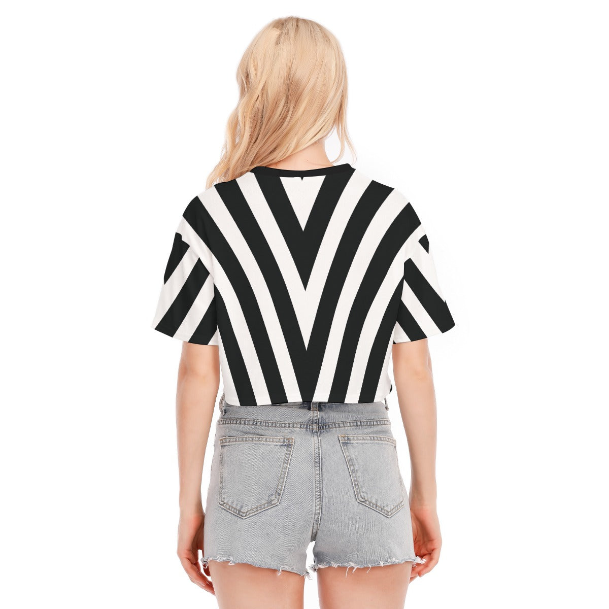 - Hombros caídos, cuello redondo, top corto.